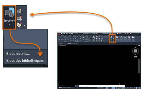 En règle générale, les blocs sont insérés dans le dessin courant à partir des sources suivantes :