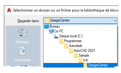 Chaque dessin du dossier DesignCenter contient un jeu de définitions de blocs connexes.