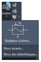- Cliquez sur Insérer dans l’onglet Début, puis sur Blocs des bibliothèques. La commande PALETTEBLOCS se lance alors.