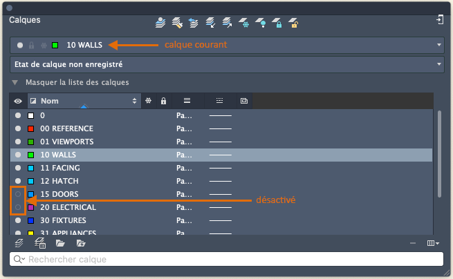 Important : Evitez de créer tous les objets sur un seul et même calque. Le calque constitue la fonction essentielle pour organiser les éléments des dessins AutoCAD.