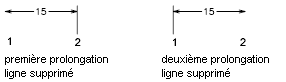 La distance de décalage d'une ligne d'attache à partir de l'origine n'est jamais inférieure à la valeur spécifiée par la variable système DIMEXO.