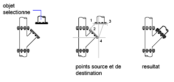 En 3D, utilisez la commande ALIGNER3D pour spécifier jusqu'à trois points afin de définir le plan source, puis jusqu'à trois points pour définir le plan de destination.