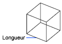 Génère une boîte en fonction de la longueur, de la largeur et de la hauteur que vous indiquez. Si vous entrez des valeurs, la longueur correspond à l'axe X , la largeur à l'axe Y et la hauteur à l'axe Z. Si vous choisissez un point pour spécifier la longueur, vous précisez également la rotation dans le plan XY.