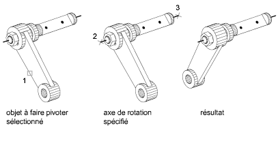 3. Désignez deux points pour définir l'axe de rotation par rapport auquel les objets vont pivoter (2 et 3).