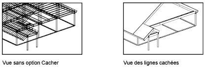 CACHER supprime toutes les lignes masquées d'une vue. Lorsque l'affichage est régénéré, tous les objets s'affichent normalement.