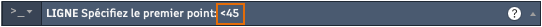 Si vous devez tracer une ligne à un angle donné, vous pouvez le verrouiller pour le point suivant. Par exemple, si le deuxième point d'une ligne doit être créé à un angle de 45 degrés, entrez <45 dans la fenêtre de commande.