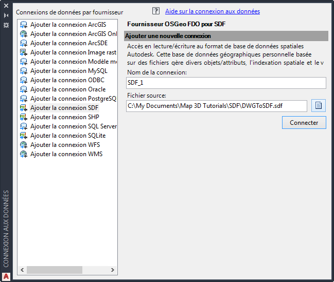 Vous allez vous connecter au fichier SDF que vous avez créé.