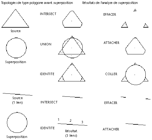 Lorsque vous superposez deux topologies, vous choisissez une méthode déterminant l'interaction entre les deux topologies. Dans certains cas, le résultat varie selon la topologie qui constitue la source et celle qui s'y superpose.