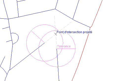 Les objets pourraient être prolongés suivant leur chemin naturel et former une intersection à un point projeté. | Intersection projetée |