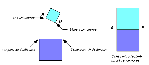 La différence d'angle entre les deux points source et les deux points de destination représente la rotation.