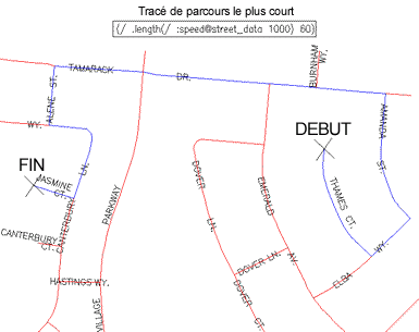 L'analyse résultante indique le parcours le plus direct, en termes de temps et non de distance, pour se rendre du premier au second point.
