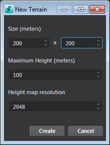 In the New Terrain options that appear, set the following and click Create: