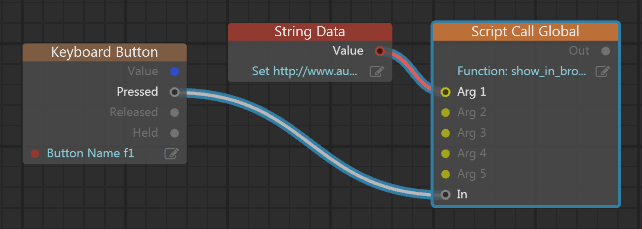Instead of calling out to a function that is defined in a Lua script, you can enter a block of Lua script directly into the Script slot of the Script > Script Do String node. When the node's In event is triggered, your code block is evaluated within the engine's Lua environment.