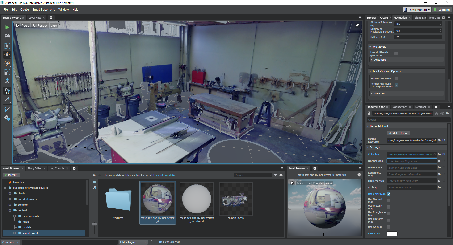 If you're using your point cloud with the Live template, you will also want to regenerate the navigation mesh and add a physics actor to your mesh. For more information, see Set up the Live template.