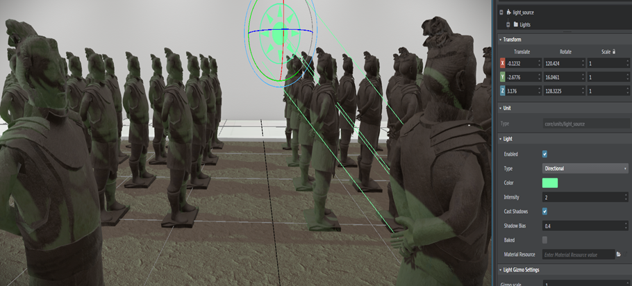 In the editor, a directional light is shown by white arrows pointing in the direction of the light: