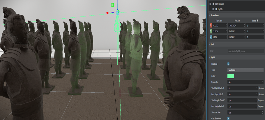 Note that since a directional light source shines with equal intensity over the whole level, its position in the scene does not matter. Also, it does not attenuate over distance.