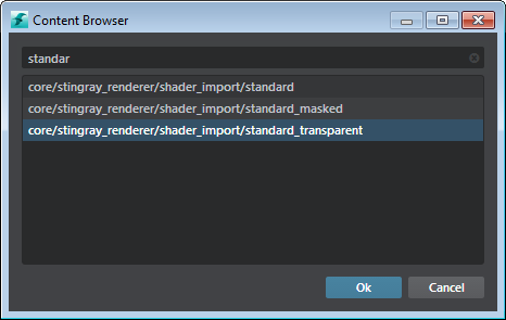 In the Content Browser, start typing in the Search field to narrow the listings, and select the new parent material.