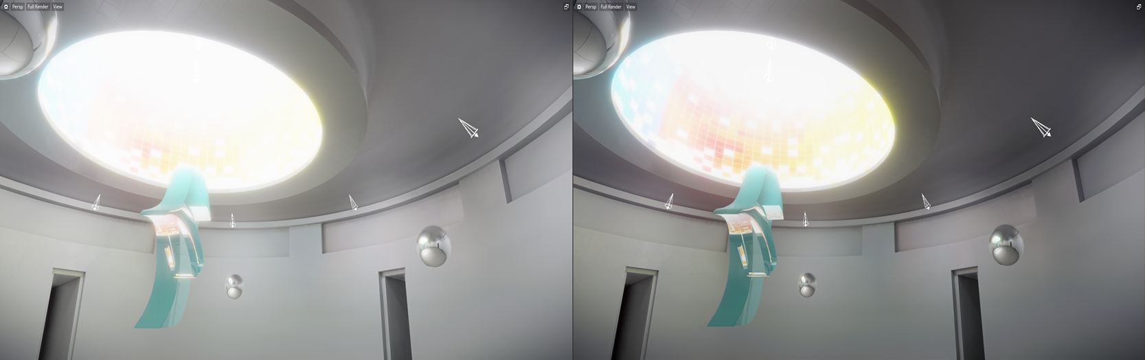 The auto exposure component for the default shading environment lets you automatically adjust the scene to changes in light levels, creating an eye adaptation effect as you move through differently lit environments, like exiting a dark room and moving into a brighter outdoor scene.