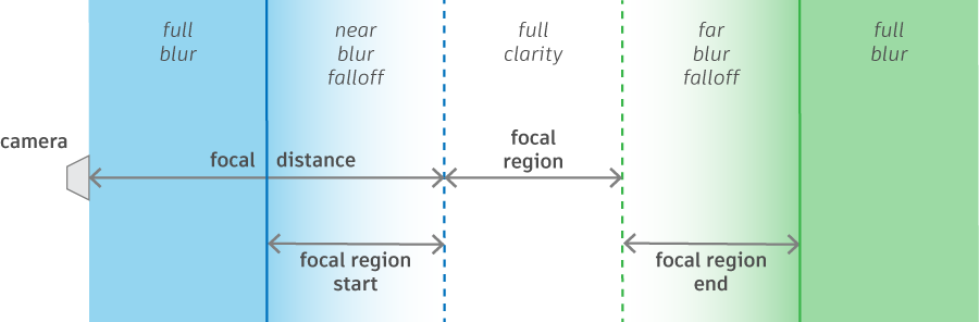 You can set the focal distances for the effect using the properties in the shading environment as follows: