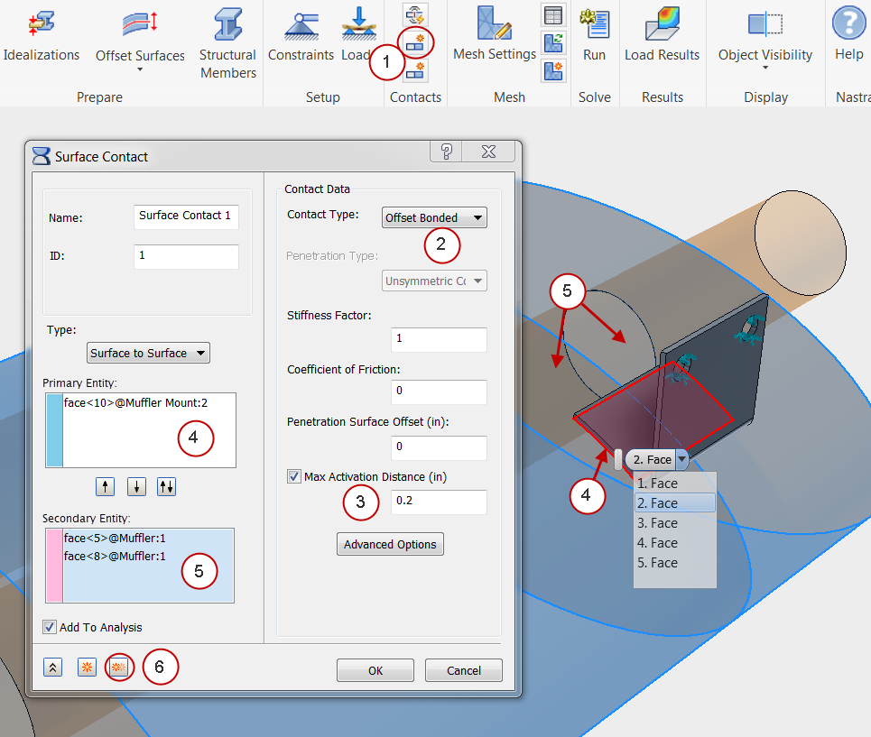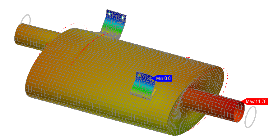 We'll use an Offset Bond contact between the brackets and the muffler shell to ensure that parts that don't touch are bonded together.