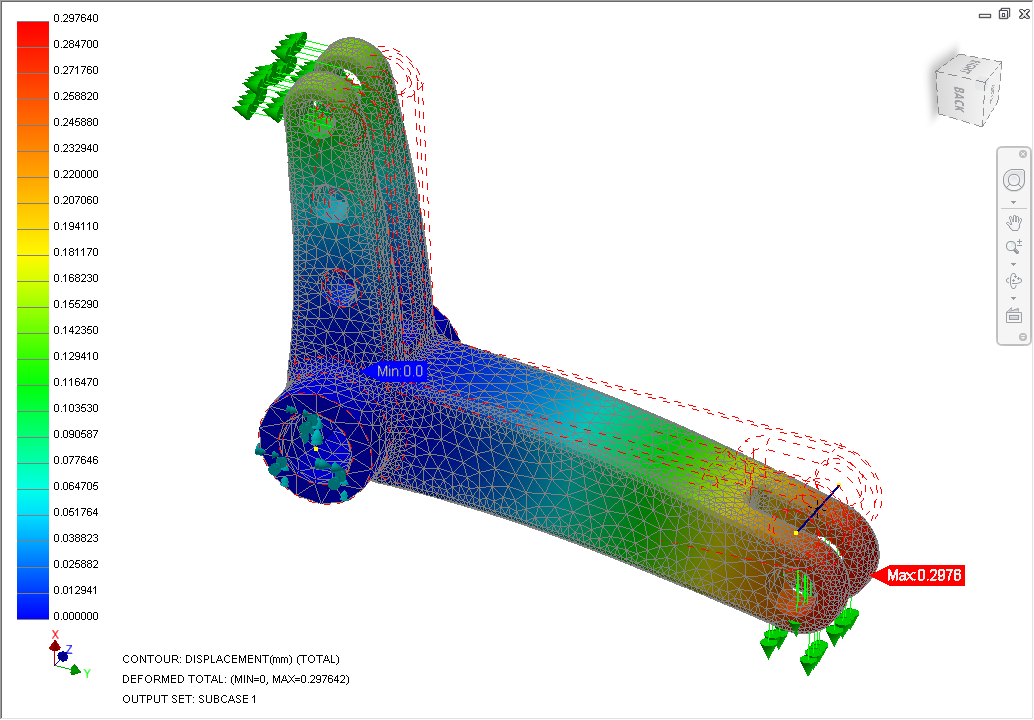 In this exercise we computed the engineering values needed to properly load and constrain the cast lever. The steps we used were similar to those used in the first exercise (cantilever beam), but the model was a real-world part. We also learned how to extract results including the use of the Probe tool.