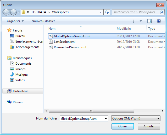 Pour importer les options globales