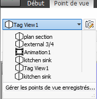 la liste déroulante Points de vue enregistrés, puis sélectionnez le point de vue à rappeler.
