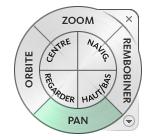 Les disques de navigation SteeringWheels peuvent vous permettre de gagner du temps, car ils combinent les outils de navigation courants dans une interface unique. Les disques de navigation sont spécifiques au contexte dans lequel un modèle est affiché.