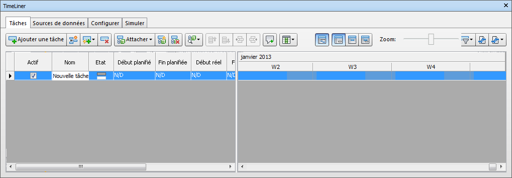 , puis cliquez sur l'onglet Tâches dans la fenêtre TimeLiner.