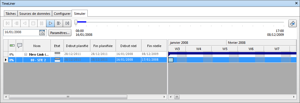 L'Onglet Sources de données permet d'importer les tâches d'une source externe telle que Microsoft Project™. Pour définir les types de tâche importée, choisissez un champ provenant d'une nomenclature externe ou définissez vous-même les types de tâche. Vous pouvez modifier les paramètres de tâche directement dans TimeLiner. Vous pouvez également mettre à jour la nomenclature en externe et actualiser les tâches dans TimeLiner pour les faire correspondre à celles de la source externe. Toutes les modifications que vous apportez aux tâches importées à partir de fichiers de projet externes seront écrasées lors de l'actualisation de la source de données correspondante.