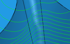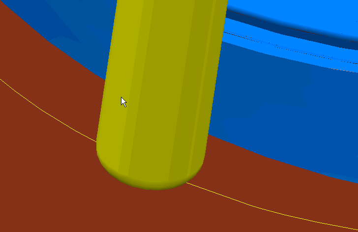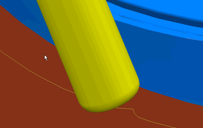 Axis calculation tolerance — Enter a tolerance value for calculating the tool axis. For a relatively rare number of geometries, the tool axis can waver slightly as it positions accurately on the surfaces to be machined. This can be due to small but significant changes in the geometry as the tool moves from one position to another. This tolerance can be larger than the machining tolerance to stabilize the tool axis as it moves across this geometrically varying region. As a consequence excess material may be left on the surface but the load on the tool may be reduced.