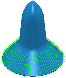 Radial finishing creates a 2D radial pattern within a boundary and then projects it onto the model. This pattern is then machined.