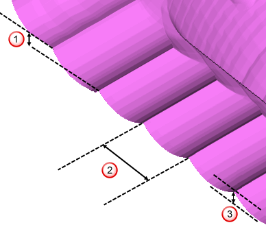 — Shows the 3D Offset toolpath stepover in the shallow areas.