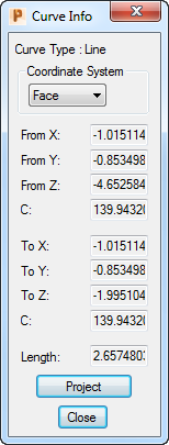 Use the Curve Info – Line dialog to display geometric information about the currently selected curve-type line.