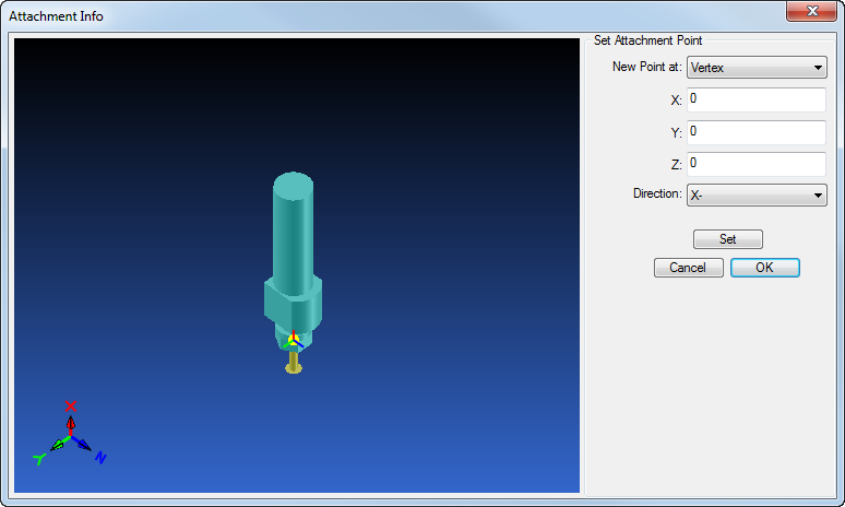 Set — Click to verify the location of the attachment point on the solid model if you have entered coordinates manually.