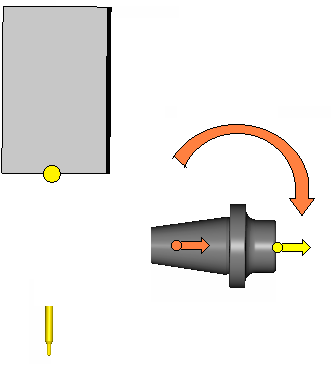 When using Full Machine Simulation in <PRODUCT>/Mill, <PRODUCT> mounts the tool to the holder and then mounts the holder into the tool head as follows:
