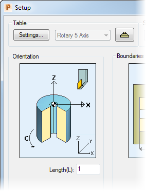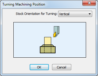 In PartMaker/Mill, you can use the Turning Machining Position dialog to change the orientation of the stock for turning operations when you are using a Rotary 5 Axis table.