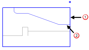 Defining cutting limits by the stock profile enables you to define a non-rectangular cutting area. PartMaker creates a rectangle around the defined stock profile (see