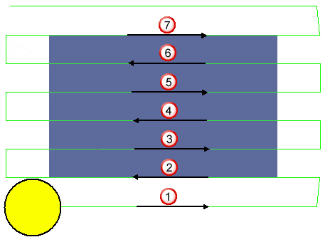Depending on the stepover, the last pass of the path may be in the opposite direction to facilitate the removal of burrs.