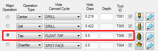 Hole Diam — This field displays the hole diameter for each operation in the cycle.