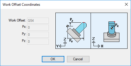 Use the Work Offset Coordinates dialog to view or enter the work coordinates for your current Face window.