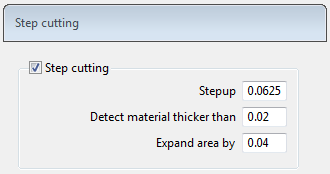 Use the Step cutting page to create intermediate toolpath slices that reduce terracing. It rest machines the terraces remaining from a large area clearance toolpath with the same tool in the same toolpath.
