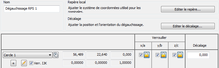 - Cochez la case Verr. IJK pour utiliser l'orientation du plan de référence du cercle pour verrouiller les deux axes de rotation du dégauchissage.