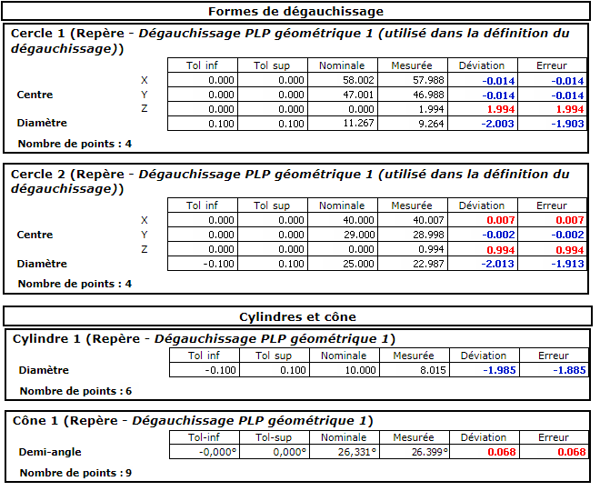 Si vous avez importé les résultats d'une inspection OMV, vous pouvez afficher les détails de la mesure sur l'onglet Rapport. Par exemple :