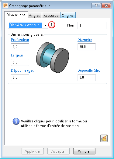 Diamètre — Entrez le diamètre de la feature.