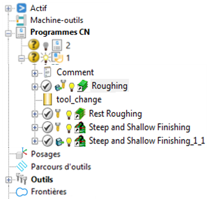 — Signale un programme CN modifié depuis son post-traitement et pour lequel l’option Ordre automatique est désactivée.