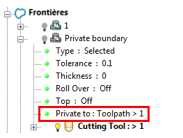 Si vous supprimez un parcours d'outil en utilisant une frontière privée, la frontière est supprimée le long du parcours d'outil.