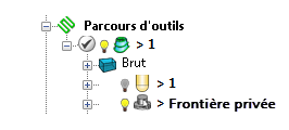 Si vous changez la frontière privée associée avec un parcours d'outil, le parcours d'outil abandonne la frontière et elle réapparaît dans la branche Frontières de l'explorateur.