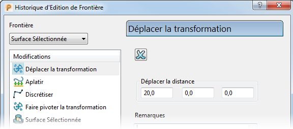 Dans ce cas, la modification a déplacé la frontière de 20 mm en X et vous pouvez modifier ces valeurs.