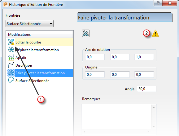 Indique que si vous éditez des valeurs, vous pouvez recalculer votre frontière, mais l'historique n'est pas complètement ré appliqué.